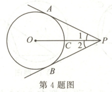 4.如图,$PA$切$\odot O$于$A$,$PB$切$\odot O$于$B$,$OP$交$\odot O$于$C$.下列结论中错误的是(
