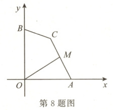 8.如图,点$A$,$B$的坐标分别为$A(2,0)$,$B(0,2)$,点$C$为坐标平面内一点,$BC = 1$,点$M$为线段$AC$的中点.连接$OM$,则$OM$的最大值为(