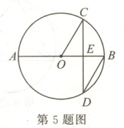 5.如图,$AB$是$\odot O$的直径,弦$CD \perp AB$于点$E$,$\angle CDB = 30^{\circ}$,$\odot O$的半径为$5\ cm$,则圆心$O$到弦$CD$的距离为(