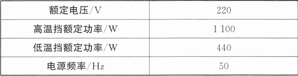 (2)电烤箱在高温挡正常工作时电路中的电流$I_1=\frac{P_{高}}{U}=\frac{1100W}{220V}=5A$,电路中$R_1$的阻值$R_1=\frac{U}{I_1}=\frac{220V}{5A}=44\Omega$