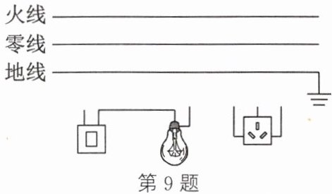 9. (2025 · 南通模拟)请你用笔画线代替导线,把图中的三孔插座和带有开关的电灯分别正确地接入电路中。
