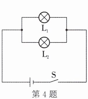 4. (易错题)如图所示,在探究并联电路中电流、电压规律的实验中,闭合开关$S$后,发现$L_1$比$L_2$亮,则(设灯丝电阻不变)