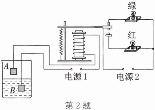 2. 虽然纯净的水是不导电的,但一般的水都能导电。根据水的导电性可以设计一种水位自动报警器,其原理如图所示,图中的螺线管中插入了一根软铁棒,通电后磁性会更