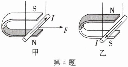 4. 磁场对通电导线力的方向如图甲所示。请在图乙中画出磁场对通电导线作用力的示意图。