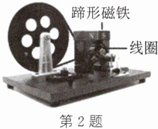 。(2)将小灯泡和电流表串联后与手摇发电机相连。缓慢摇动轮盘,观察到电流计指针来回摆动,且小灯泡闪烁发光,这说明该发电机产生的是