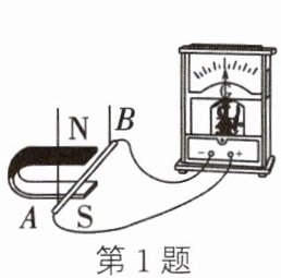 1. 如图所示,将一根导线$AB$放置在蹄形磁体形成的磁场中,磁场方向竖直向下,导线的两端与灵敏电流计相连。下列说法正确的是