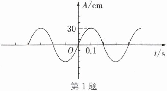 1. 如图所示为一个物体振动时的振幅与时间关系的波形图,观察此图可以知道,波源的振幅是