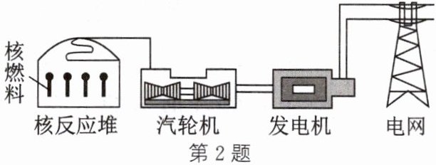 2. 核电站的发电流程如图所示,在发电过程中,下列所述能量转化顺序正确的是 (