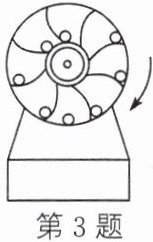 3. 如图所示,这是达·芬奇造的一个“永动机”装置,他认为右边的重球比左边的重球离轮心更远些,在两边不均衡的力的作用下,轮子沿箭头方向转动不息。如果不施加外力,你认为这个装置