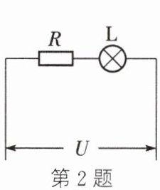 2. 如图所示,灯泡$L$和电阻串联后接在电压为$U$的电路中,已知电阻的阻值为$R$,通过电路的电流为$I$,则灯泡在$t$时间内消耗的电能是 (