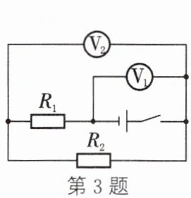 3. 在如图所示的电路中,当闭合开关后,两个电压表指针偏转角度相同,则在相同时间内电流通过电阻$R_1$和$R_2$所做的功之比为 (