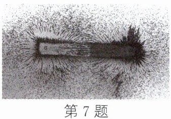7. 在“探究条形磁体周围磁场”的实验中,小科将玻璃板平放在磁体上并均匀地撒上一层铁屑,轻敲玻璃板,铁屑就会有序地排列起来,如图所示。下列说法正确的是 (