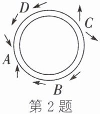 2. 放在水平桌面上的一个圆纸盒里放了一条形磁体,圆纸盒外放着一些小磁针,小磁针 N 极的指向如图中箭头所示,则圆纸盒里条形磁体 N 极靠近
