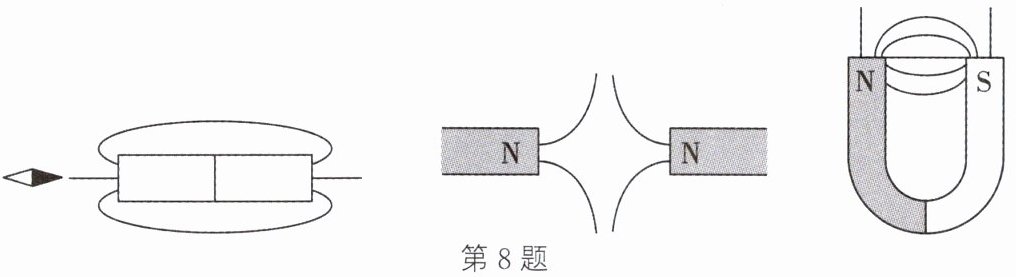 8. 标出下列图中磁感线的方向(小磁针涂黑端为 N 极)。