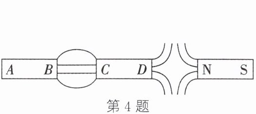 4. 三个磁体相邻磁极间的磁感线分布如图所示,C 端为