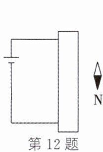 12. 如图所示,开关闭合后,位于螺线管附近的小磁针$N$极指向下,请在螺线管上画出导线的绕法。