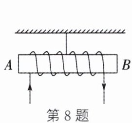 8. 如图所示,把螺线管沿东西方向水平悬挂起来,然后给导线通电,想一想将会产生的现象是