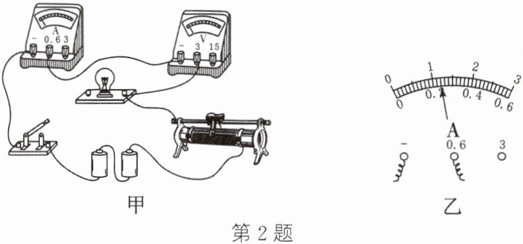 (左/右)端。(3) 当电压表的示数达到 2 V 时,电流表的示数如图乙所示,其读数为