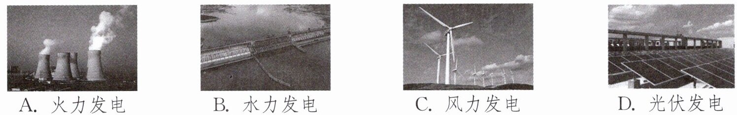 (能/不能)。(5)我国沿海地区有较丰富的风力资源,如果有一功率为$10^5 kW$的风力发电机组,预计年发电量为$2.5×10^8 kW·h$,相当于完全燃烧多少千克的煤放出的能量?(煤的热值为$3.0×10^7 J/kg$)