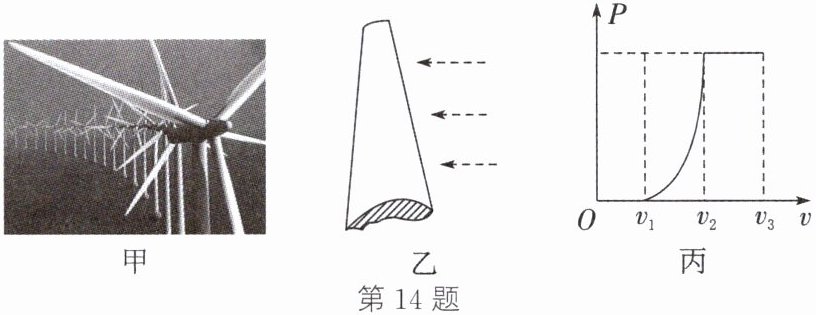 14. 如图甲所示为某地风力发电的外景。风力发电机组主要由风机叶片和发电机组成。请回答下列问题。