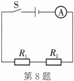 8. 在如图所示的电路中,电源电压为$6\ V$,电阻$R_1$为$10\ \Omega$。闭合开关$S$后,电流表的示数为$0.2\ A$,电源电压保持不变。求: