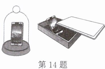 14. 小明用如图所示的装置探究“电磁波的传播特性”,能接收到呼叫信号的是放在
