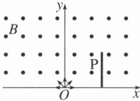(3)(4分)要使薄金属板$ P $右侧不能接收到粒子,求挡板沿$ x $轴正方向移动的最小距离。