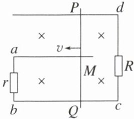 6. 如图所示,同一平面内的三条平行导线串有两个电阻R和r,导体棒PQ与三条导线接触良好,匀强磁场的方向垂直纸面向里。导体棒的电阻可忽略。当导体棒向左滑动时,下列说法正确的是
