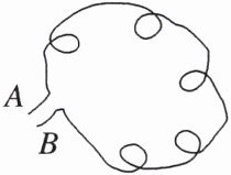 2. (2024·嘉兴市高二期末)将一根表面绝缘的硬质细导线按如图所示绕成线圈,外沿大圈所围面积为S1,每个小圈所围面积均为S2。有一随时间t变化的磁场,方向垂直线圈平面,磁感应强度大小B=B0−kt,B0方向垂直纸面向里,k大于0,B0与k均为常数。关于线圈中总的感应电动势大小和A、B两点电势高低判断正确的是