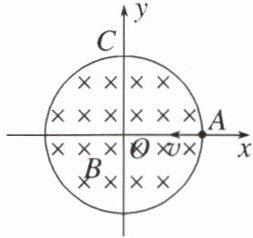 利用左手定则可知,该粒子带负电荷。粒子由A点射入,由C点飞出,其速度方向改变了90°,则粒子轨迹半径R = r,又qvB = m$\frac{v²}{R}$,则粒子的比荷$\frac{q}{m}$ = $\frac{v}{Br}$。