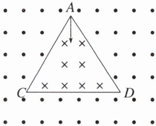 【例 4】如图所示,边长为 $ l $ 的等边三角形 $ ACD $ 内、外分布着方向相反的匀强磁场,磁感应强度大小均为 $ B $。顶点 $ A $ 处有一粒子源,能沿 $ \angle CAD $ 的角平分线方向发射不同速度的粒子,粒子质量均为 $ m $,电荷量均为 $ +q $,不计粒子重力。则粒子以下列哪一速度发射时不能通过 $ D $ 点( )