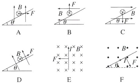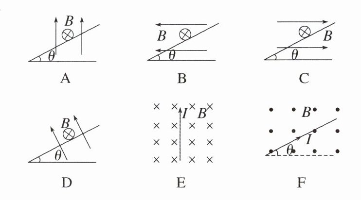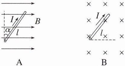 。2. 乙图中,通电导线的方向和磁场方向垂直,则导线所受的安培力$F=$