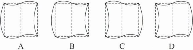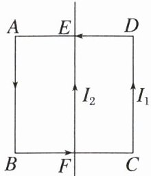 (2024·舟山中学高二月考)如图所示,将一轻质矩形弹性软线圈$ABCD$中$A$、$B$、$C$、$D$、$E$、$F$六点固定,$E$、$F$分别为$AD$、$BC$边的中点。一不易形变的长直导线在$E$、$F$两点处固定,现向矩形软线圈中通入电流$I_1$,直导线中通入电流$I_2$,已知$I_1\ll I_2$,长直导线和线圈彼此绝缘,则稳定后软线圈大致的形状可能是(