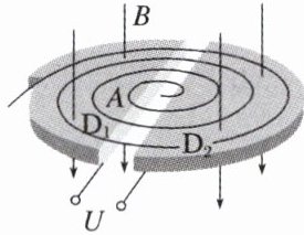 (1)粒子在电场中运动时间极短,因此所加交流电源频率要符合粒子回旋频率,由洛伦兹力提供粒子做圆周运动的向心力,有$qvB = m\frac{v^{2}}{r}$,解得$T = \frac{2\pi r}{v} = \frac{2\pi m}{qB}$,交流电源频率$f = \frac{1}{T} = \frac{qB}{2\pi m}$。
