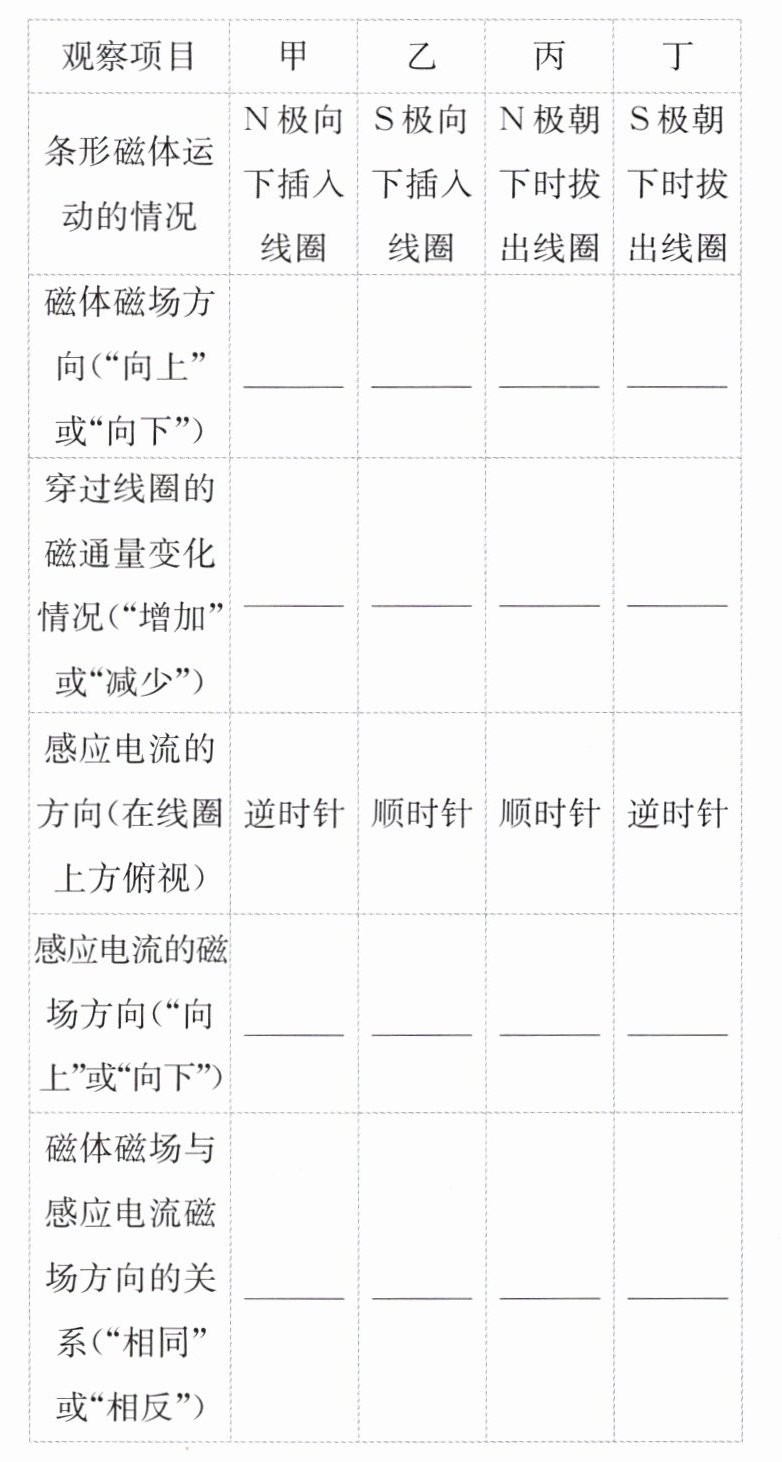 (2)探究条形磁体插入或拔出线圈时感应电流的方向。