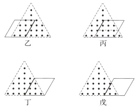 (1) 如图乙、丙、丁、戊为在线框穿过磁场的过程中的四个位置,请标出四个状态下充当电源的部分;