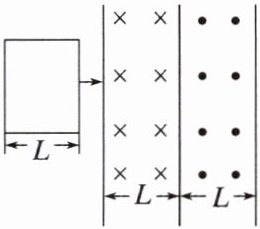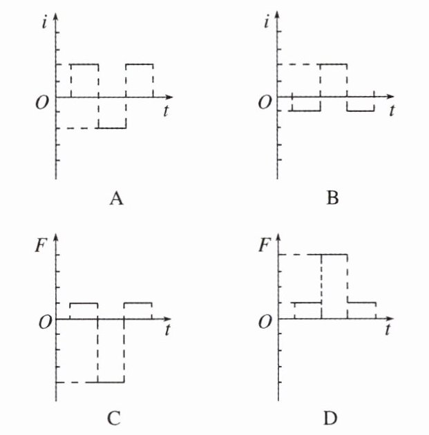 (多选)(2024·浙江大学附属中学高二期中) 如图,空间中存在两个相邻的,磁感应强度大小相等、方向相反的有界匀强磁场,其宽度均为 $ L $。现将宽度也为 $ L $ 的矩形单匝闭合线圈从图示位置沿垂直于磁场方向匀速拉过磁场区域,线圈侧边始终与磁场边界平行。若规定顺时针方向为感应电流的正方向,水平向左为安培力的正方向,则在该过程中,能正确反映线圈中所产生的感应电流或其所受安培力随时间变化的图像是 (
