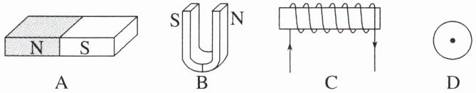 A [由左手定则,结合通电导线左半部分受到安培力方向垂直纸面向里,右半部分受到安培力方向垂直纸面向外,导致通电导线俯视看顺时针转动,同时向下移动,可知磁感线方向如图所示;若为条形磁体,左端为$\mathrm{N}$极,故A正确;若为蹄形磁体,左端为$\mathrm{N}$极,故B错误;若为通电螺线管,电流从右侧流入左侧流出,故C错误;若为直线电流,电流的方向垂直纸面向里,故D错误。