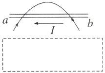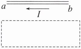 把一根通电的硬直导线 $ ab $ 放在磁场中,导线中的电流方向由 $ b $ 到 $ a $,如图所示,导线可以在空中自由移动和转动,俯视看,导线在安培力的作用下先顺时针转动,转过一个小角度后,接着边转动边向下移动,则虚线框内的场源可能是