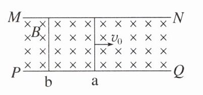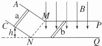 - 解:根据动量定理,对$a$棒$-I_{安}=mv - mv_{0}$,又$I_{安}=BLq$($I_{安}$为安培力的冲量,$q$为流过的电荷量)。