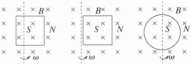 如图所示的几种情况中,如果$N、$$B、$$ω、$$S$均相同,则感应电动势的峰值均相同。