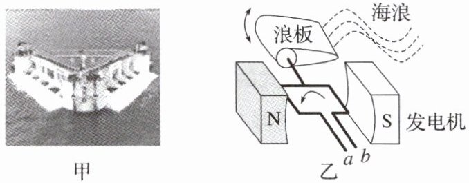 (2024·舟山中学高二月考)“南鲲号”被称为“海上充电宝”,是一个利用海浪发电的大型海上电站,其发电原理是海浪带动浪板上下摆动,从而驱动发电机线圈转动,其中浪板和线圈的连接装置使线圈只能单方向转动。若线圈如图乙所示逆时针转动,并向外输出电流,则下列说法正确的是(