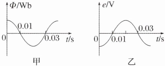 一矩形线圈在匀强磁场中绕垂直于磁感线的轴匀速转动。穿过线圈的磁通量随时间变化的图像如图甲所示,则以下说法中正确的是(
