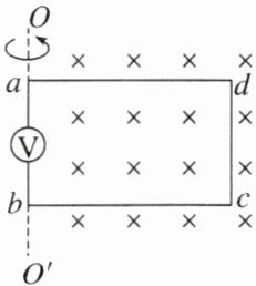 如图所示,$OO'$右侧空间有方向垂直纸面向里的匀强磁场,磁感应强度大小为 B,面积为 S 的金属“$\sqsubset$”形线框 adcb 与理想电压表接触良好,线框绕$OO'$以角速度$\omega$匀速转动,则电压表示数为(