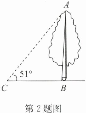 2. (2025·辽宁)如图,为了测量树 $AB$ 的高度,在水平地面上取一点 $C$,在 $C$ 处测得 $\angle ACB = 51°$,$BC = 6 m$,则树 $AB$ 的高约为