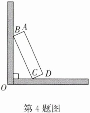 4. 如图,一块矩形木板 $ABCD$ 斜靠在墙边,$OC \perp OB$,点 $A, B, C, D, O$ 在同一平面内,$AB = 1$,$AD = 4$,$\angle BCO = \alpha$,则点 $A$ 到 $OC$ 的距离为 (