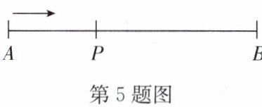 5. 如图,舞台AB长10米,如果报幕员从点A出发站在舞台的黄金分割点P处,且$AP < BP$,则报幕员应走