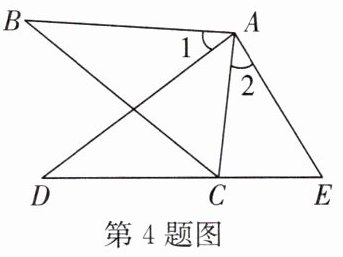 4. 如图,$\angle B = \angle D,\angle 1 = \angle 2$. 求证:$\bigtriangleup ABC \backsim \bigtriangleup ADE$.