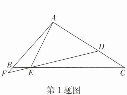1. 如图,在$\triangle ABC$中,$D,E$分别是边$AC,BC$上的点,$DE$与$AB$的延长线交于点$F$,若$\angle AED = \angle ABC$,$AF = 9$,$EF = 3$,则$BF$的长为