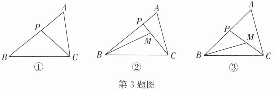 3. 在$\triangle ABC$中,$P$为边$AB$上一点,$M$为线段$PC$上一点.